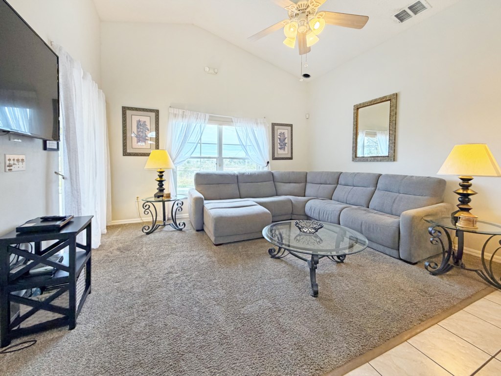 Comfortable sectional sofa provides plenty of seating after a busy day enjoying the area. Cable TV and high speed 1 Gig internet included. The kitchen is fully equipped with everything you may need to cater for your family.